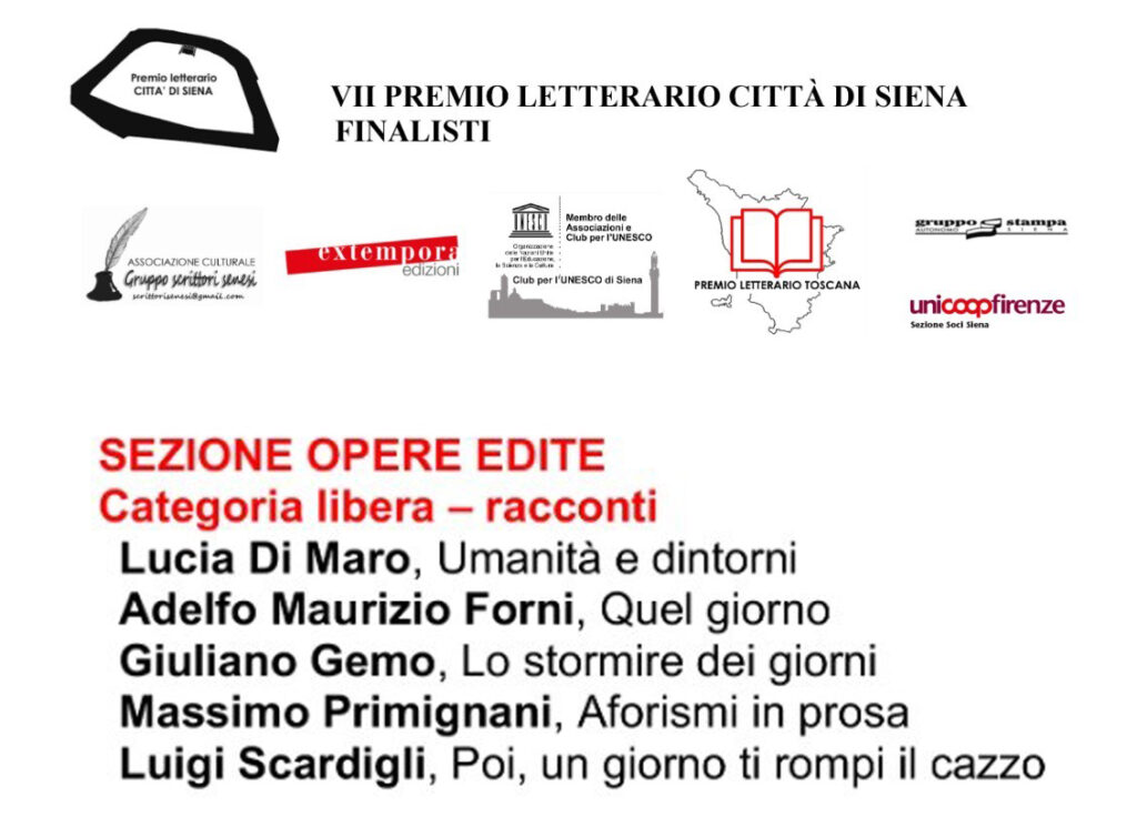 Luigi Scardigli con il suo “Poi, un giorno, ti rompi il cazzo” è uno dei cinque finalisti dell’edizione 2022 del premio Città di Siena nella sezione opere edite, categoria libera – racconti.